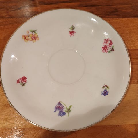 Neljä käytettyä kahvikupin aluslautasta. Arabia, Pikkukukka. Myydään yhdessä