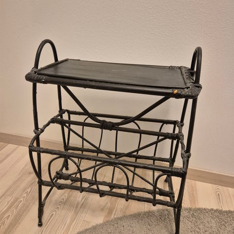 Myydään rottinkinen lehtiteline.