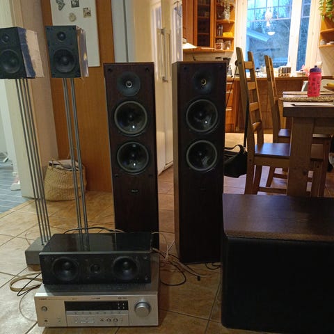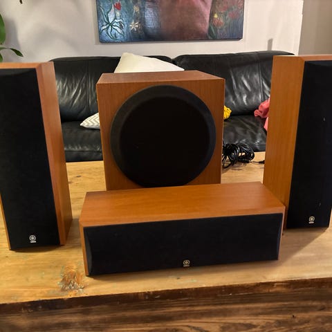 Kuvan mukaiset toimivat äänentoistolaitteet sisältäen, johdot, 5 kpl audio pro kaiuttimet sekä subbari, jossa pientä kulumaa, ei vaikuta äänentoistoon. MobilePay ja omat kantajat noudon yhteydessä.