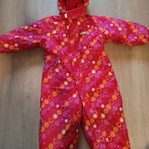 92 koon haalari. Ei enää muhkein, tällaisenaan kevät säille sopiva ja pakkasilla ollut meillä välipuvun kanssa. pehmentymää polvissa ja pepussa, mutta edelleen siisti kuntoinen mielestäni. Irrotettava huppu, jalkalenksut uupuu.