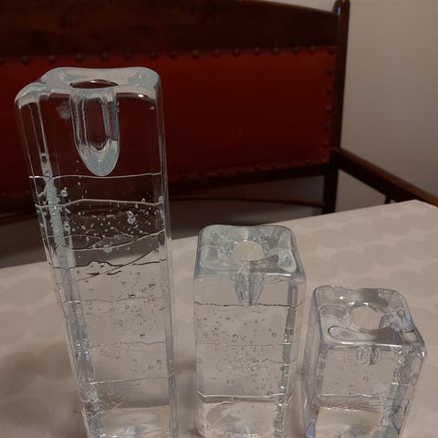 Timo Sarpanevan suunnittelemat Arkipelago kynttilänjalat 2 kpl. Kolmiomallia. 2 kpl:een yhteishinta 50 euroa. Myydään myös yksittäin 25 euroa/ kpl tai tarjoa. Ehjät ja virheettömät. Korkeus n. 13cm.