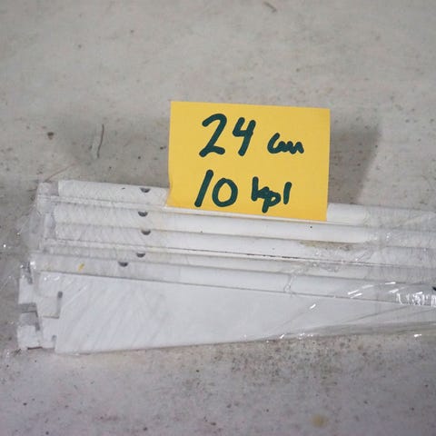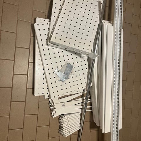 Sovella säilytysjärjestelmän hyllyt ja kannattimet. Hyllyn mitat 60cm x 60cm ja kannattimien 60cm. Hinta yhdelle hyllylle ja kannatinparille 30€. Hyllyjä ja kannatinpareja on yhteensä 3kpl.
