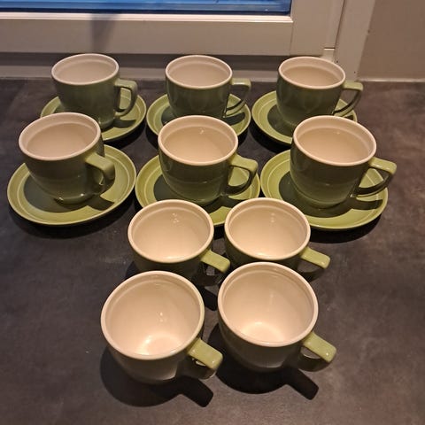Myydään erinomaisessa kunnossa oleva, käyttämättä jäänyt setti yhtenä kokonaisuutena (8 mukia, sokeriastia ja kerma-/maitoastia). Mukien vetoisuus 2 dl ja pohjassa merkintä Kermansavi, Finland. Sokerikon ja kermakon pohjassa merkintä Kermansavi; Valmistettu Suomessa; konepesua, pakastuksen, uunin ja mikroaaltouunin kestävä. Mieluiten nouto paikan päältä, kiitos.