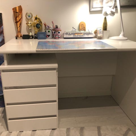 Ihan hyvässä kunnossa kirjoituspöytä. 140x59 ja 80x49 cm.
