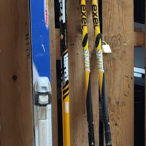 Karhun sukset 185 cm ja Exelin sauvat 160 cm