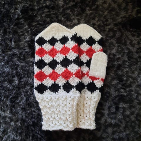 Lapaset 7 veljestä langasta. Naisten koko. Nouto Raisiosta tai postitus. Hinta 20 euroa, postimaksu + 5 euroa.