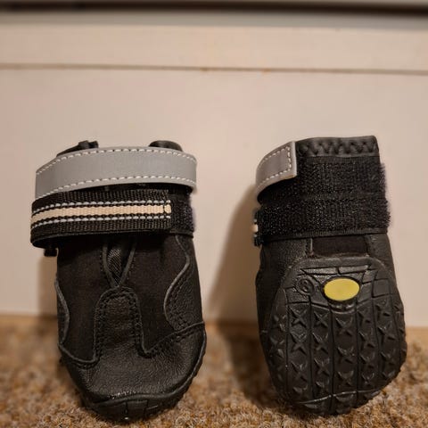 Uudet neljä paria koiran uusia tossuja tassun leveys noin 5-5,5 cm (yhdet olleet koiran tassuissa kiinni yhden lenkin ajan muut uusia ).