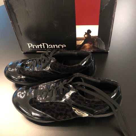 Kerran kokeiltu, kunnes huomattu liian suuriksi. Korko 5 cm, korkosuojat ja kenkäpussi.