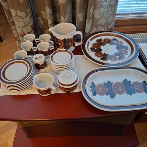 Myydään hyväkuntoisia Arabia Rosmarin astioita. Mieluiten koko setti kerralla. Hinta 160€ koko setti/tarjous.