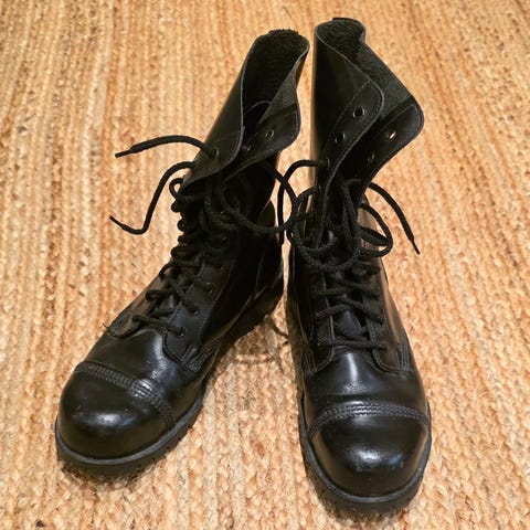 Underground Orginals- maihinnousukengät, teräskärki, 10-reikäiset. Koko 5 (38) pohjanpituus 27,5 cm. Muutama jälki kengän kärjessä josta kuva