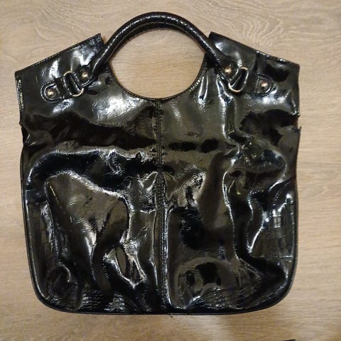 Takana vetoketjullinen tasku. Laukun sisällä myös vetoketjullinen tasku sekä kännykkätasku. Tämä käyttämätön.