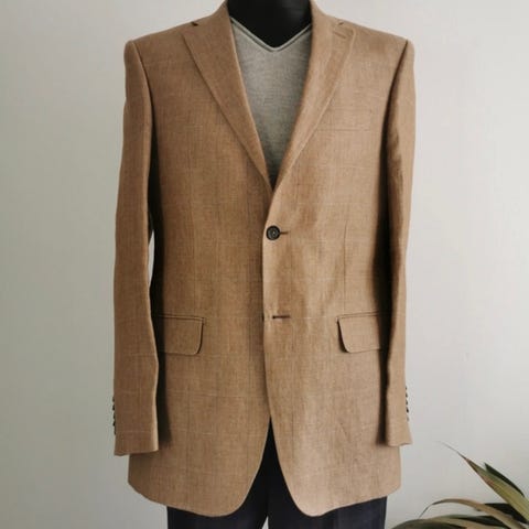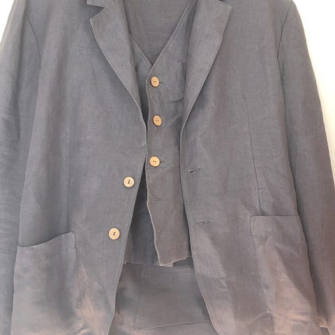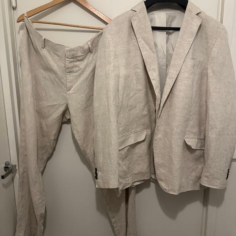 Myydään H&m ruskea pellava puku. Takki ja housut.