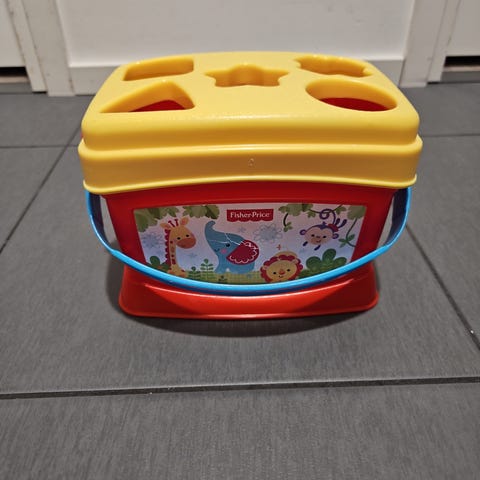 Kovassa käytössä ollut, mutta hyvässä kunnossa pysynyt palikkolaatikko. Kaikki palikat tallella.