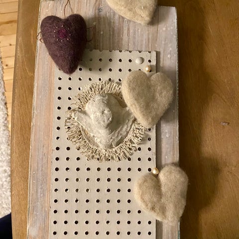 Säilytys/tarjoilu/koriste -astia "palko": hopean/pronssin sävyinen, puinen. Erittäin hyväkuntoinen. 44 cm pitkä, noin 16 cm leveä.