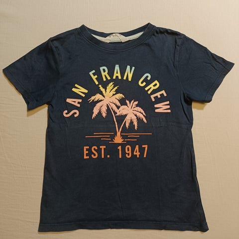 Erittäin siistissä käytetyssä kunnossa muutoin, mutta etupuolella logon alla ihan haalea tumma pieni viiva, joka ei ole lähtenyt normaalissa pesussa.