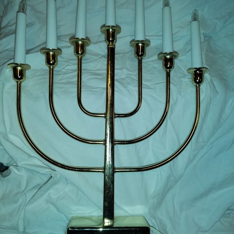 Kaunis, todennäköisesti messinkinen kolmihaarainen kynttelikkö