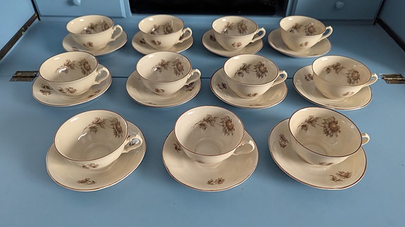 Lautasista 2kpl on Arctica Resta sarjan lautasia. Muut 7kpl on normi Arctica sarjan lautasia. Lautaset ovat muuten samalaisia mutta Resta sarjan lautanen on halkaisijaltaan 1cm pienempi. Resta sarja tehty alun perin keittiöihin ja ravintoloihin.