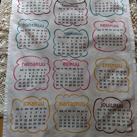 Myynnissä myös toisenlainen kalenteripyyhe samalta vuodelta. Siitä on erikseen ilmoitus.