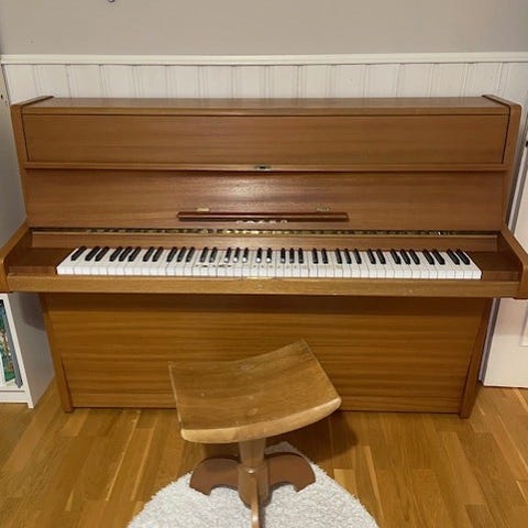 Myydään piano. Kiiltävä peilaava pinta. Viritystä ja todennäköisesti muutakin huoltoa kaipaa. Kaikki koskettimet toimii. Siisti, ei tarrajälkiä. Painava, kantoapua ei ole tarjolla. Yhden kerroksen matka portaissa. Tuolin saa mukaan.