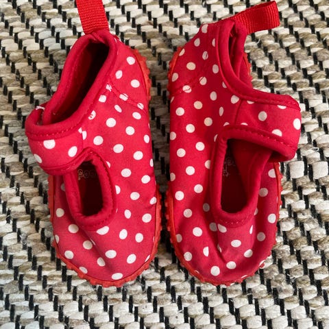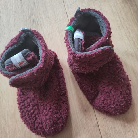 H&M toppatöppöset pikkutaaperolle. Käytetty vain pariin kertaan kaupassa (vain sisällä) eli oikein hyvässä kunnossa. Pohja on myös kangasta eli sopii mainiosti vasta kävelemään oppivalle taaperolle. Liukuestepilkkuja pohjassa ja tarrakiinnitys, fleecevuori.