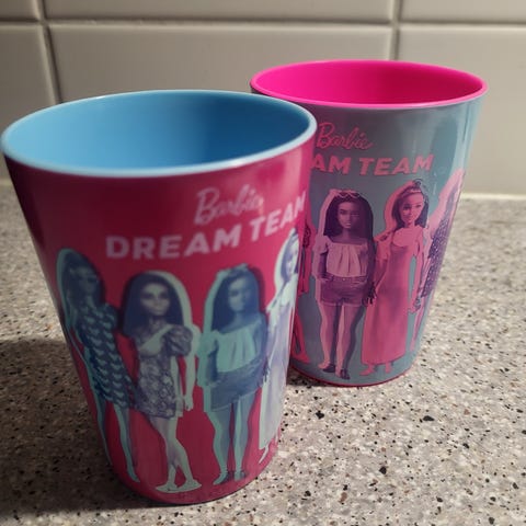 Myydään kuvien mukaisessa kunnossa oleva Tupperware Barbie Muki Kuppi Kulho säilytysrasia Mattel 2001