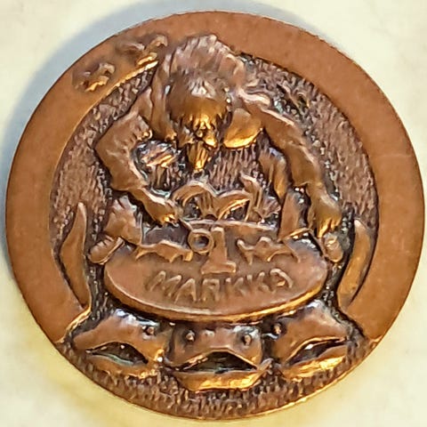 Rahapajan v. 1995 lyömä jetoni, Lihr. Jetonin halkaisija n. 22 mm.