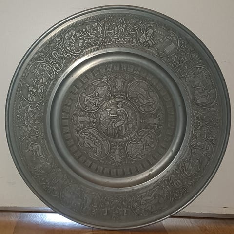 Myydään kuvien mukaisessa kunnossa oleva Zinn Pewter Seinälautanen West Germany Länsi Saksa