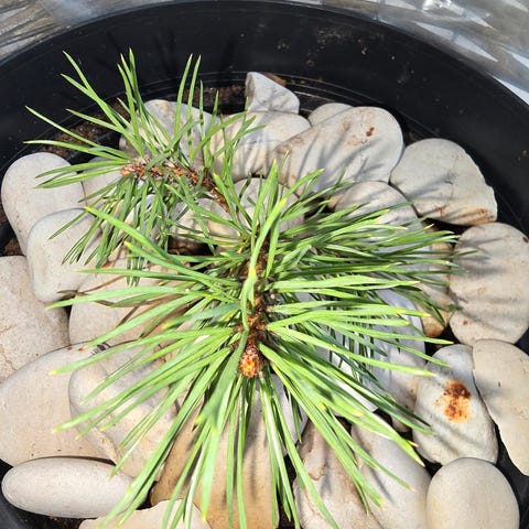 Männyntaimi. Sisäruukku ja koristekivet kuuluu hintaan. Ulkoruukku (kori) ei kuulu kauppaan