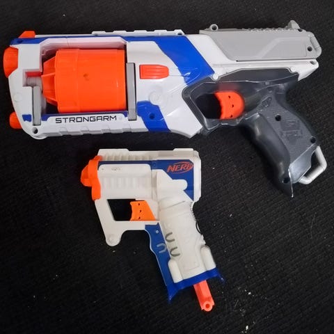 Nerf aseet 2kpl, panokset puuttuvat.