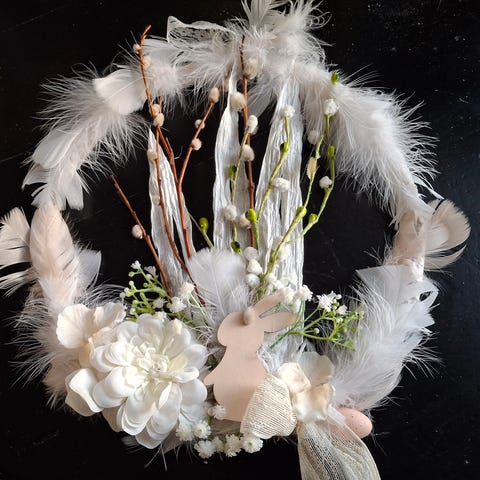 Pääsiäiskranssi, 3 erilaista, musta-valkoinen höyhenkranssi on
