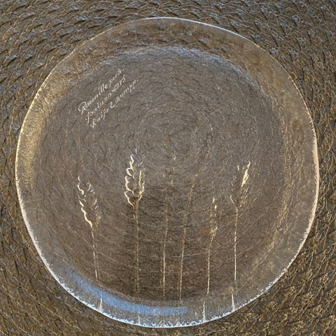 Kaija Aarikan suunnittelema ja Humppilan lasitehtaan valmistama ”Koivun oksa”-lasilautanen.