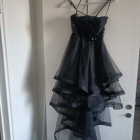 Myytävänä tilattu juhlamekko. Mekko on vaaleanharmaa, jossa "timanttikoristeita". Aluskangas on ihon värinen. Kauniisti laskeutuva kangas. Mekko on kokoa xs/s.
