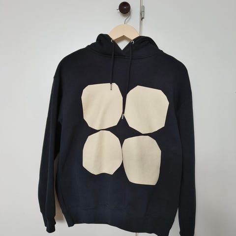 Käyttämättömäksi jäänyt mustavalkoinen Marimekon Pienet Kivet -tunika. Sivusaumoissa taskut. On minulle hiukan liian tiukka, joten jäänyt kaappiin käyttämättömäksi.