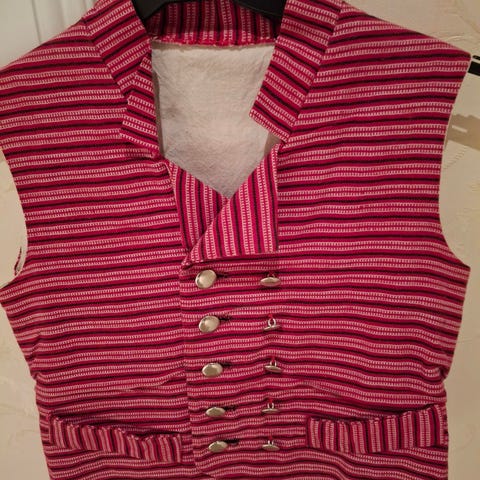 Kaksi Rovaniemen kansallispuvun liiviä paitoineen ja nauhoineen.