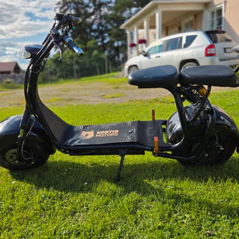 Varusteet: peruutusvaihde, varashälytin, lukittava takaboksi, LCD näytöllinen mittaristo akun varausmittarilla, etu- ja takavalo, jarruvalo sekä etu- ja takavilkut. Paketissa tulee mukana myös keppiteline, minkä voit asentaa tarvittaessa.