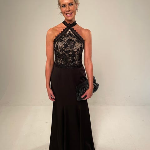 Naisten upea iltapuku/juhla-asu, teetätetty