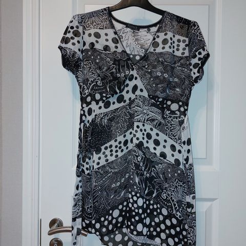 Siisti ja hyväkuntoinen musta-valkoraidallinen mekko. Puolipitkät hihat. Kangas joustaa jonkin verran. Merkki Pure Instinct.