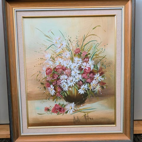 Kukkataulu, kukka-asetelma, Palettiveitsellä maalattu kukka-asetelma puukehyksillä Taiteilija Keeling Huom Katso myös muut ilmoitukseni taulu noudettavissa tai toimitus,Posti, Matkahuolto