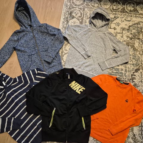 Myydään settinä vaatepaketti koossa noin 134/140.