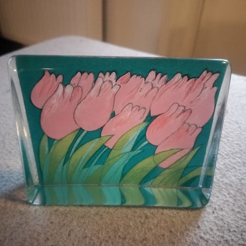 Lasikortti tulppaanit koko15x12cm. Heljä Liukko -Sundström (Iittala) uuden veroinen.