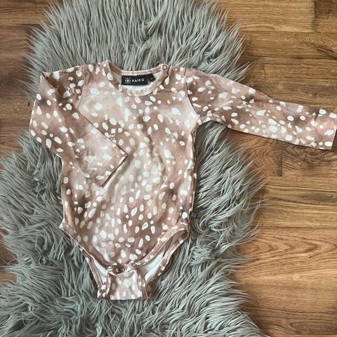 Siisti käytetty kaikon copper bambi onesie kokoa 86/92cm. Haalistumaa värissä varmasti uuteen verrattuna ja valkoisessa hiukan harmaantumaa. Ehjä ja siisti vielä kaikin puolin seuraavalle.