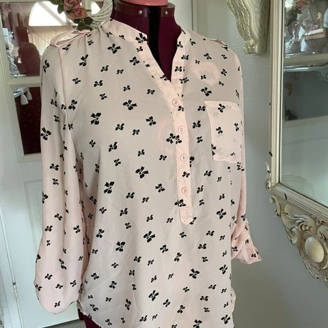 Kaunis puhtaanvalkoinen röyhelösomisteinen paita joustavaa trikoota. Koko 42/44