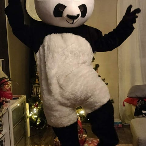 Panda-aiheinen puku. Pehmeää materiaalia. Koko M.