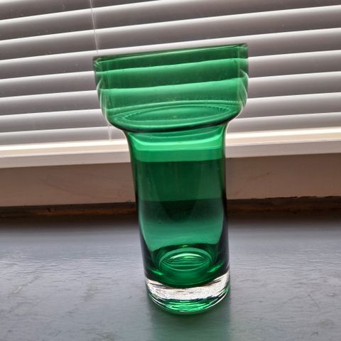 Riihimäen lasi Tamara Aladin vihreä hyväkuntoinen komea Maljakko korkeus 18 cm