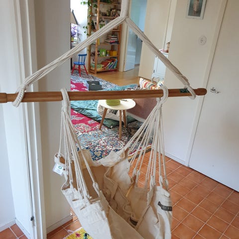 Myydään sininen Nonomo riippukeinu. Erittäin kätevä ja mukava esim koliikki, refluxi tai muuten huonosti nukkuvalle vauvalle. Meille tästä oli suuri apu, erityisesti päiväuniin. Keinun saa kiinnitettyä kattokoukkuun tai kuvissa näkyvään erilliseen jalkaan.
