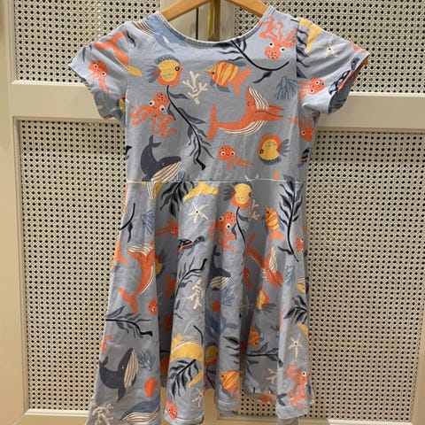 Myydään uusi Polarn o pyret kellohelmamekko sydän kuviolla. Koko 122