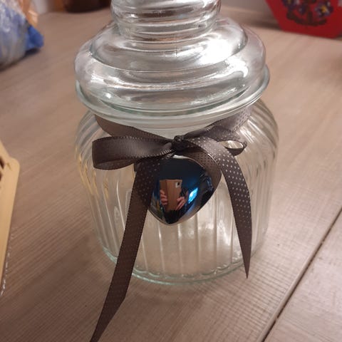 Myydään hyväkuntoinen iso lasipurkki kannella, kierteet kannessa