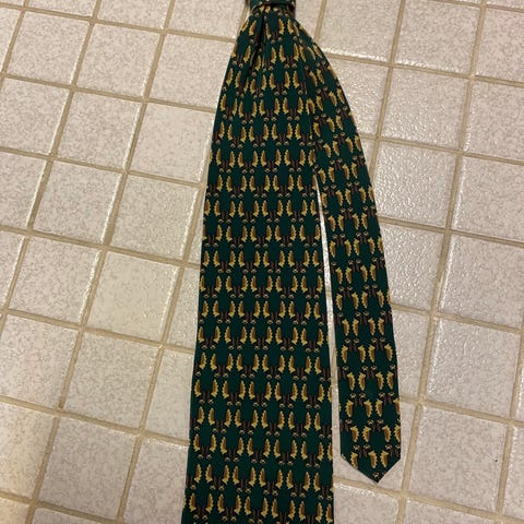 Kuvan mukainen silkkikravatti, kaunis maanläheinen kuosi. Suunnittelija Marja Kurki. Uudenveroinen. Katso sivuiltani myös muut tuotteet.