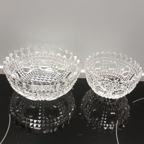 Lasinen astia, kaksi kerrosta. Voi käyttää päällekkäin tai erikseen, yksi kansi. Käytetty, hyvässä kunnossa.