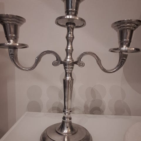 Myydään musta kynttilänjalka. Korkeus noin 22 cm.